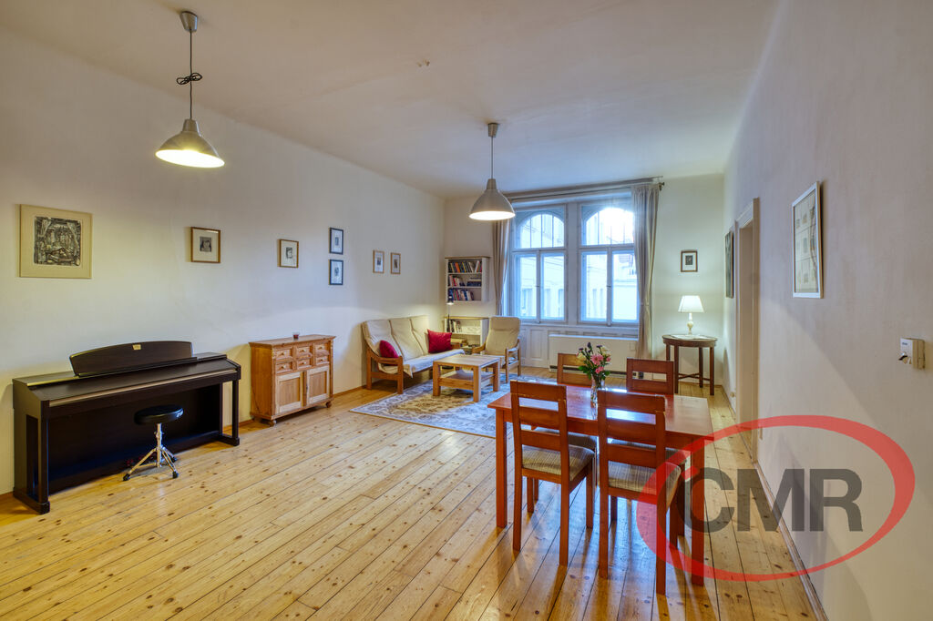 Zajímavá nabídka prostorného, světlého bytu 2+kk 94 m2 s možností předělání na 2+1 ve 2. podlaží zrekonstruovaného secesního domu situovaného v atraktivní vyhledávané lokalitě v srdci Prahy, P-1 Staré Město, Národní ulice. Byt se skládá z opravdu prostorného obývacího pokoje s kuchyňským koutem, samostatné též prostorné ložnice se vstupem jak z chodby, tak z obývacího pokoje, koupelny s vanou, WC odděleně. Dále je zde šatna, komora s přípojkou na pračku a prostorná vstupní chodba. Byt je ve velmi dobrém, udržovaném stavu, v roce 2008 proběhla rekonstrukce, nová elektroinstalace, rozvody vody, odpady, koupelna, WC, podlahy, topení, které je řešeno akumulačními kamny s termostatem. Orientace oken do velmi klidné Martinské ulice s výhledem na kostel sv. Martina ve zdi. Hlavní devizou bytu jsou velké prostory, které působí velmi příjemně, současně však umožňují dispoziční úpravu bytu na 2+1 viz vizualizace. Byt je vhodný jak k bydlení, tak i ke komerčnímu využití díky samostatně oddělenému vchodu od hlavní částí domu a společných prostor např. pro advokátní kancelář nebo díky své poloze v centru Prahy jako investice na krátkodobý pronájem. V místě veškerá občanská vybavenost, výborné dopravní spojení, vše v pěší vzdálenosti, stanice metra Národní třída a Můstek, tramvajová zastávka Národní třída. K bytu patří sklep o velikosti 8 m2. Vřele doporučuji prohlídku!