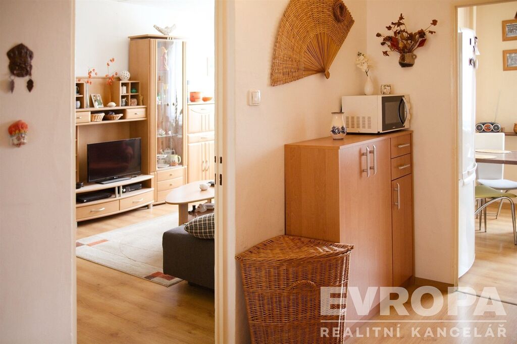 Byt se skládá ze vstupní chodby, která slouží jako distribuční koridor do všech místností. Obývací pokoj je prostorný s dostatkem přirozeného světla, kuchyně je vybavená základními spotřebiči a nabízí dostatek místa pro vaření a stravování rodiny. Byt disponuje dvěma ložnicemi, které jsou ideální pro rodinné bydlení. Koupelna a toaleta jsou oddělené, což usnadňuje ranní přípravu v pracovní dny. Součástí je i balkon s plochou 3 m², odkud se nabízí výhled na běžecký areál Hraběnka.