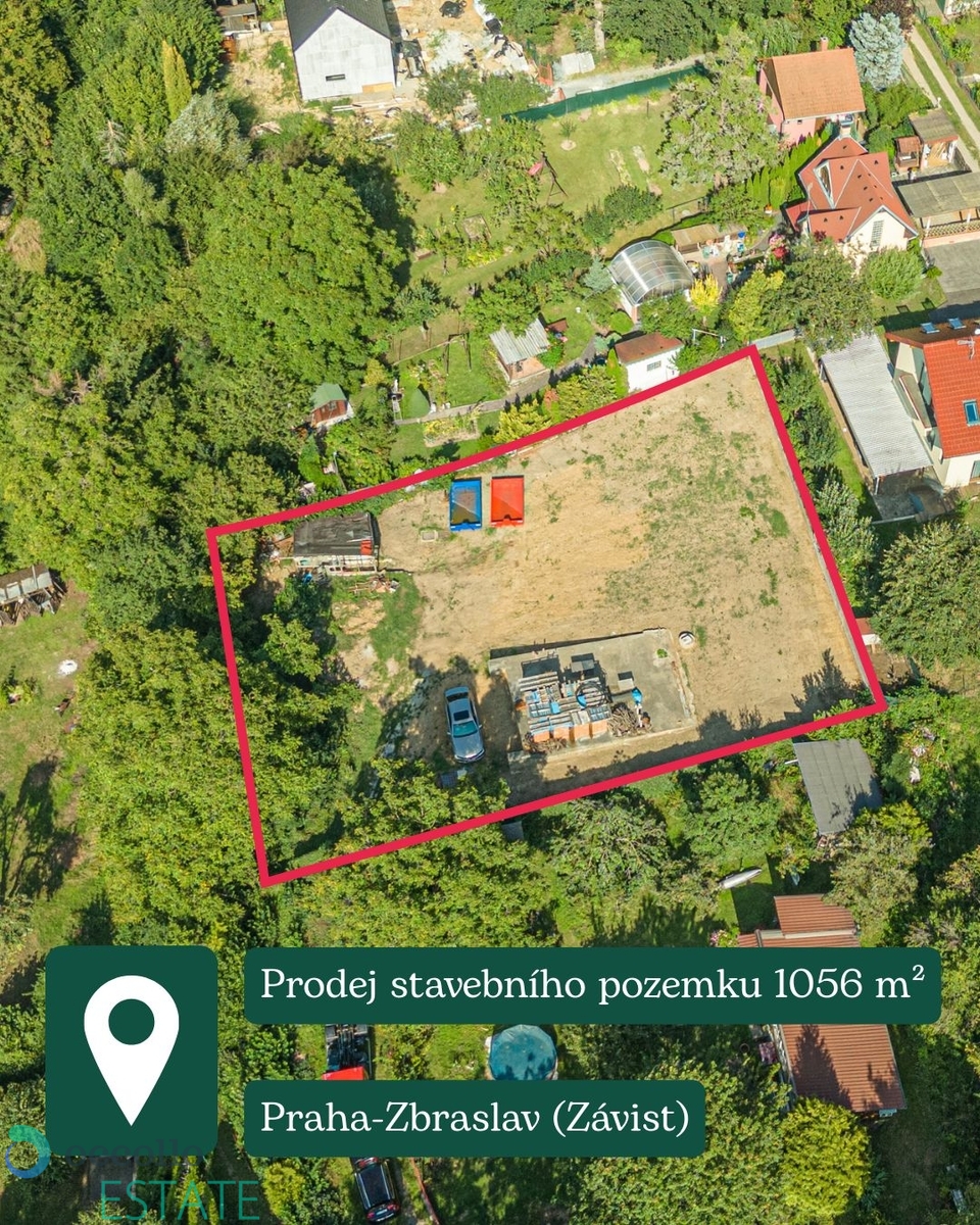 Nabízím k prodeji stavební pozemek o celkové výměře 1056 m² v atraktivní a klidné lokalitě Praha-Zbraslav, katastrální území Zbraslav – Závist, který se nachází na konci slepé ulice, v oblasti obklopené rodinnými domy, chatami a krásnými lesy. Lokalita nabízí nádherný výhled a výjimečný klid – ideální pro rodinné bydlení. Momentálně je cena za m2 je pouze 12.775 Kč, přičemž pozemky na Zbraslavi přesahují cenu 15.000/m2.