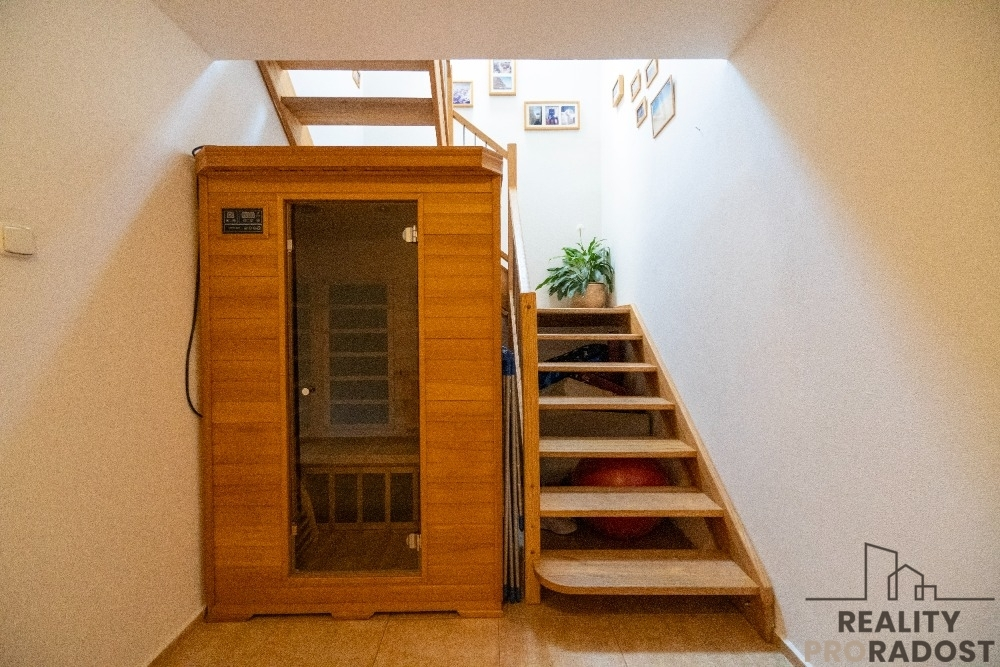 Nabízíme vám exkluzivně ke koupi krásný rodinný dům v obci Staré Hrady, nacházející se nedaleko města Jičín. Dům byl postaven v roce 2010. Jedná se o zděnou stavbu se zastavěnou plochou a nádvořím 165 m2. Za domem se nachází terasa a velká udržovaná zahrada s ovocnými stromy o ploše 1450 m2, kterou protéká malý potůček. Tato zahrada, částečně osázená vysokými stromy, je velmi působivá a splňuje vysoké nároky na relaxaci v klidném prostředí. Dům není podsklepen, má 3 podlaží, z toho jedno podlaží je půdní prostor. Topení je plynovým kotlem Viessmann a také krbem na tuhá paliva obloženým z mastku - 4 h výdrž tepla po vyhasnutí. Ohřev vody zajišťuje plynový bojler. V přízemí podlahové topení, v patře radiátorové vytápění kromě koupelny a WC, kde je rovněž podlahové topení. V přízemí se nachází předsíň, chodba, kuchyň s jídelnou, špajzka, obývací pokoj, koupelna se sprchovým koutem a WC, síň se saunou, zimní zahrada, technická místnost s prádelnou a garáž. V patře se nachází předsíň, ložnice, dětský pokoj, obývací pokoj s kuchyní a balkonem, WC, koupelna s vanou a sprchovým koutem. Vodovod obecní, odpady septik. V každé s kuchyní je myčka, sporák indukce, digestoř, lednice s mrazákem. V kuchyni v přízemí je trouba vestavěná. Dům má centrální vysavač, žaluzie, předokenní rolety. Internet - wifi. Před domem je možno na vlastním pozemku parkovat navíc až 3 auta. Střecha sedlová, střešní krytina Bramac, termofasáda 10 cm, okna plastová dvojskla, podlaha marmoleum click v imitaci parket. Dům si můžete celý prohlédnout ve video prohlídce a interiér v 3D 360 °prohlídce, stačí kliknout na fotku, kde je napsáno spustit prohlídku. Pokud by se vám to nezobrazilo nebo realitní server prohlídku nepodporuje, napište mi a já vám pošlu rád odkaz. V obci Staré Hrady se nachází zámek, hrad, restaurace. Autobusová zastávka je cca 100 m od domu a vzdálenost od městečka Libáň je 1 km, kde je školka, škola, pošta, restaurace, obchody. V okolí obce je spousta turisticky zajímavých míst - Prachovské skály, zámek Dětenice , Šolcův statek, hrad Kost, Vilémův mlýn a další. V okolí jsou cyklostezky a běžkařské stopy. Města v okolí jsou vzdálená - 15 km Jičín, Mladá Boleslav 27 km, Nymburk 30 km, Poděbrady 36 km, Praha Černý Most 70 km. Celková kupní cena je snížena a činí 9.995.000 Kč vč. všech služeb a provize zprostředkovatele. Doporučuji vám vřele prohlídku a možnost výhodnějšího hypotečního financování koupě prostřednictvím profesionálního finančního partnera. PENB je třída B, velmi úsporná.