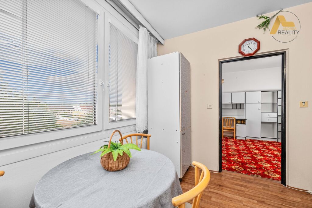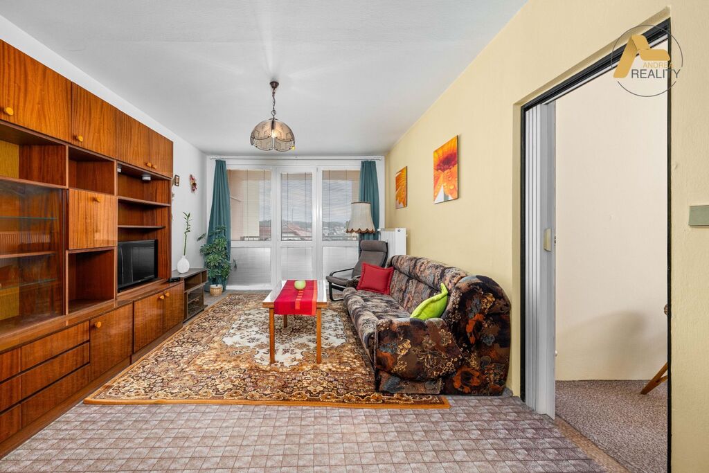 Za vchodovými dveřmi bytu se nachází předsíň (5m2) s přístupem do koupelny a toalety (3,5m2), dále se chodbičkou dostanete do kuchyně s jídelnou (11m2) s dostatkem světla a následuje vstup do prostorné haly (7m2), ideální pro posezení, či pro úložné prostory. Odtud vejdete do obývacího pokoje (20m2), na nějž navazuje zcela samostatně neprůchozí ložnice (12m2). Obývací pokoj má přístup na prostorný balkon (4m2) a pěkný výhled do okolí. Vaše prohlídka této nemovitosti nemůže pominout další z neprůchozích ložnic (12m2). Uvedené rozměry jsou orientační.