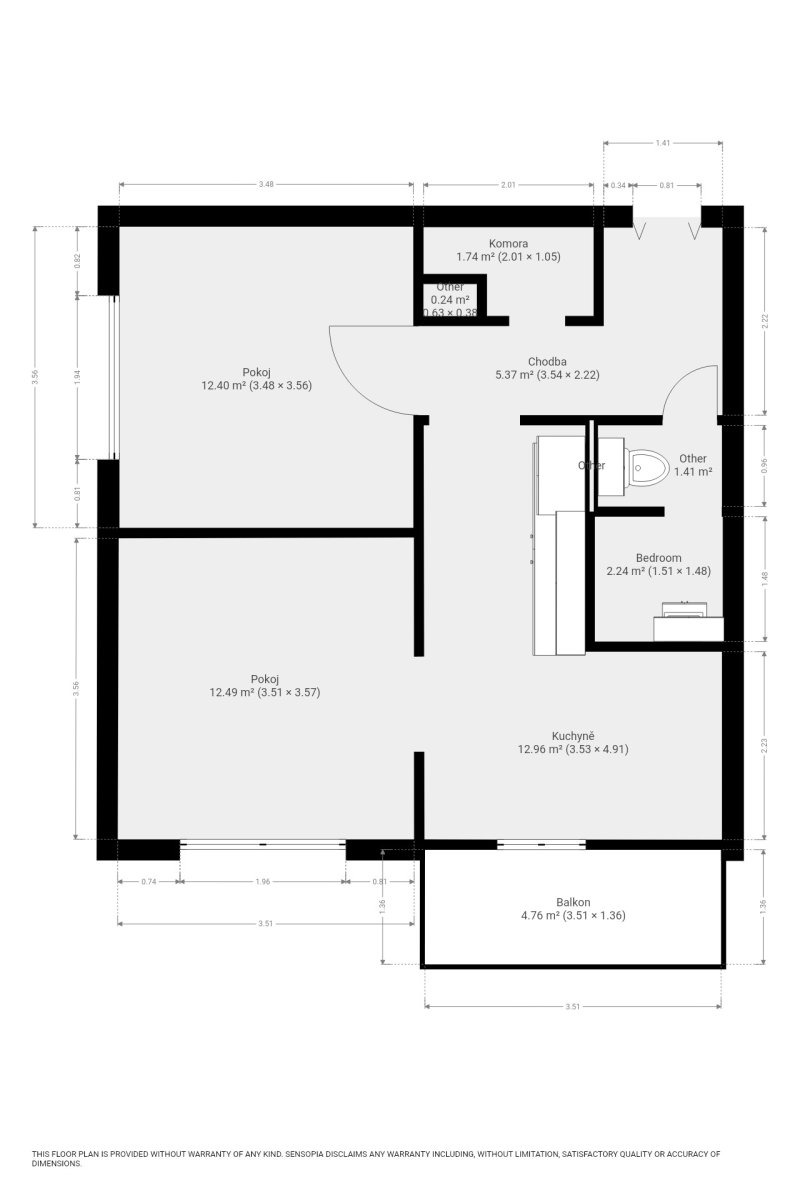 Byt disponuje balkonem. V koupelně která prošla rekonstrukcí se nachází sprchový kout, umyvadlo, zrcadlo a wc. Obývací místnost a druhý pokoj jsou neprůchozí. V bytě na podlahách je lino a laminát. Vytápění zajišťuje centrální vytápění s radiátory.