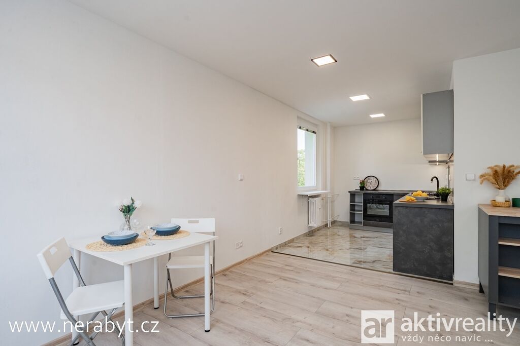 Světlý obývací pokoj je moderně propojen s kuchyňským koutem a nabízí dostatek místa i pro jídelní stůl. Nová Kuchyňská linka je vybavena plynovým sporákem Fagor s digestoří, elektrickou troubou Siguro a má připravený prostor pro myčku.