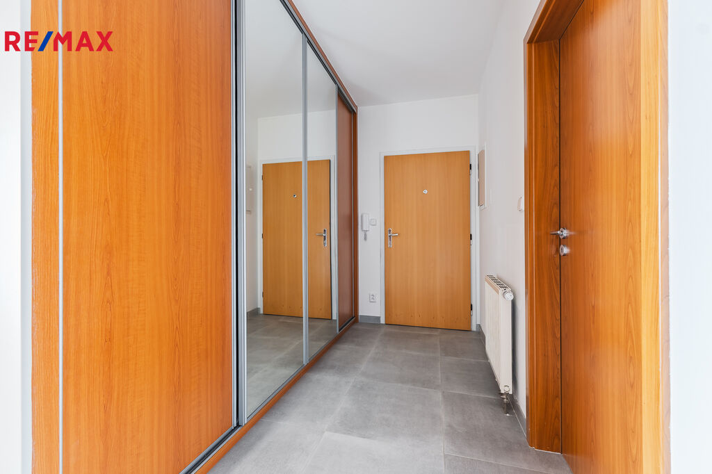 Dominantou je prostorný obývací pokoj s kuchyňským koutem, který tvoří srdce domova. Dispozice umožňuje vytvoření dětského pokoje, pracovny či herny pro děti. Součástí bytu je praktický sklep (2,5 m²). Velkou výhodou je vlastní parkovací stání v podzemní garáži.