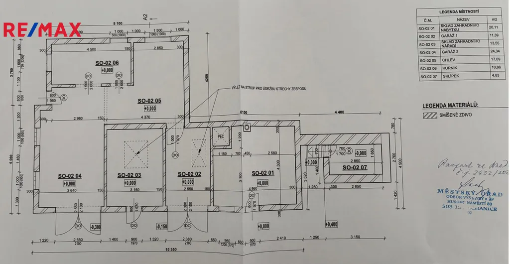 Zděný dům nabízí 4 pokoje, které nabízejí mnohostranné možnosti využití (obývací pokoj/ložnice/dětský pokoj). Dům je jednopodlažní, je částečně podsklepen a půdním prostorem. Valbová střecha s krytinou s eternitových šablon. Součásti domu je prostorná garáž (34,70 m2). Svislé konstrukce z plných cihel, stropní konstrukce betonová.
