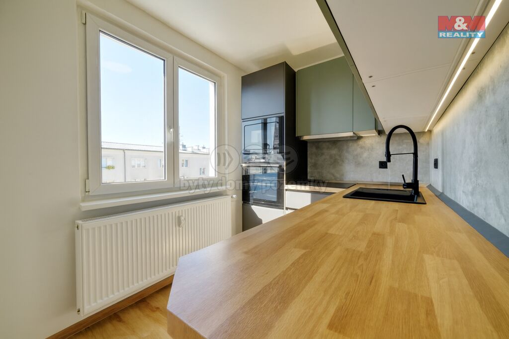 Nové rozvody elektřiny, podlahy, omítky, interiérové dveře i bezpečnostní vstupní dveře vám zajistí pohodlí i klid na dlouhá léta. Kuchyň IKEA se spotřebiči (trouba, mikrovlnná trouba, varná deska, digestoř, myčka) potěší i toho, kdo rád vaří.