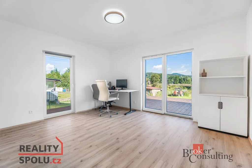 O patro výš naleznete útulnou ložnici s vlastní šatnou. Další dva pokoje, které můžete využít jakkoliv Vás napadne. Fantazii se meze nekladou.