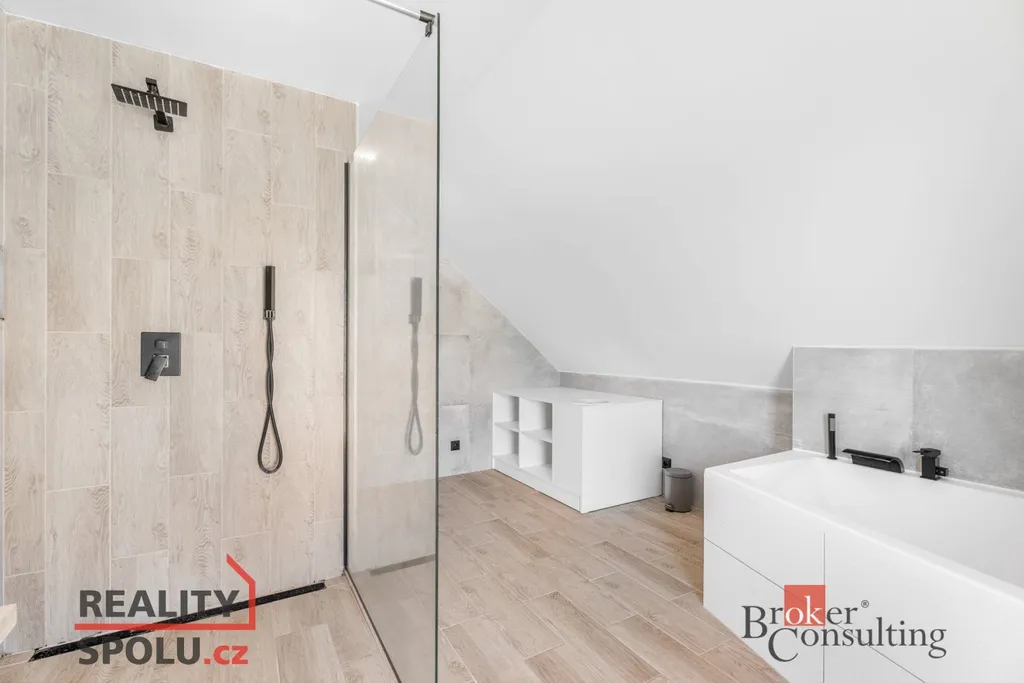Nechybí ani druhá koupelna a samostatná toaleta.