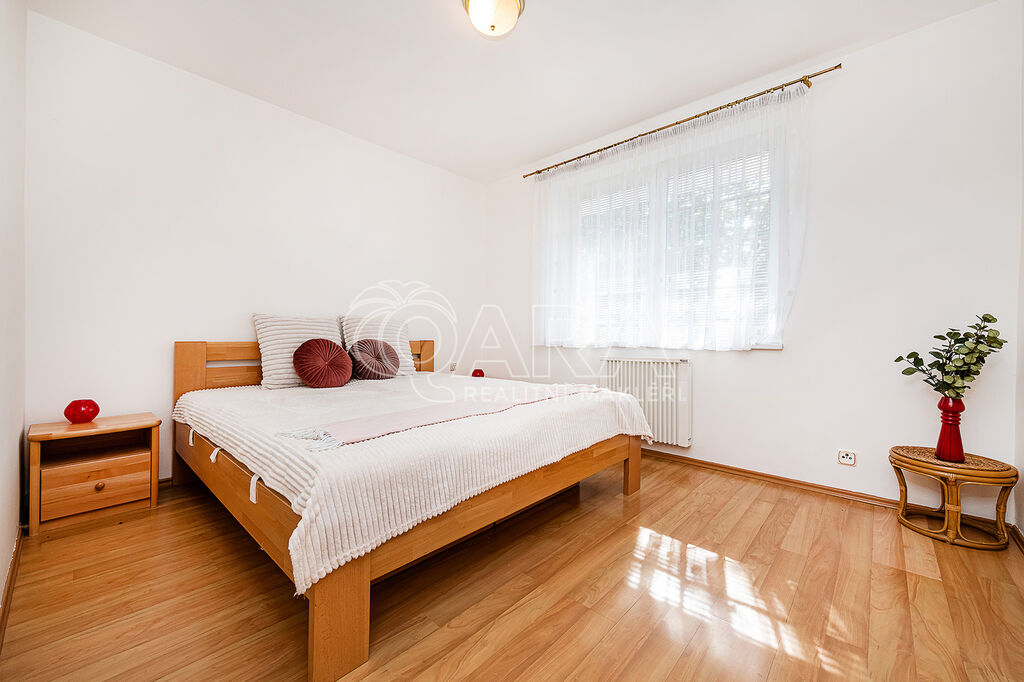 Tato vila z roku 2000 nabízí celkovou užitnou plochu přesahující běžné standardy novostaveb v okolí. Kromě hlavní obytné části je zde také sauna, stylová vinárna v samostatném domku, dva oddělené vstupy a řada úložných prostor včetně šatny a prádelny. Dům je kompletně zařízen nábytkem na míru, který je součástí ceny.