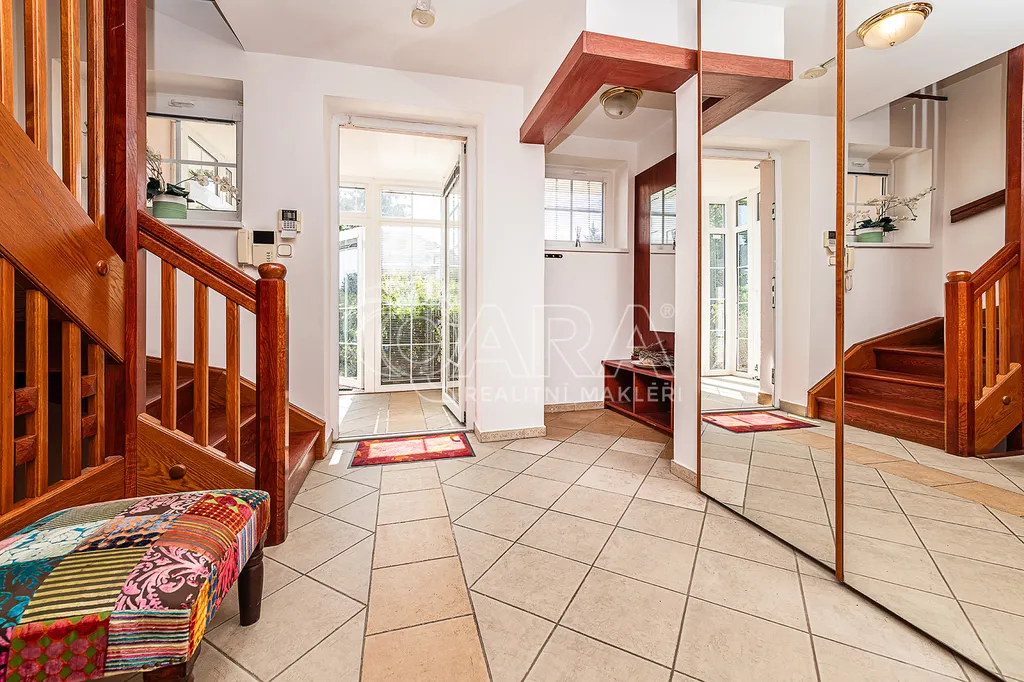 Nabízíme k prodeji výjimečně prostornou a pohodlně řešenou vilu o dispozici 8+1 se dvěma samostatnými vstupy, dvěma garážemi, saunou, vinárnou a udržovanou zahradou. Dům se nachází ve vilové lokalitě s rostoucí prestiží, kde aktuálně probíhá výstavba moderních rodinných domů v cenách od 22 do 36 milionů Kč.