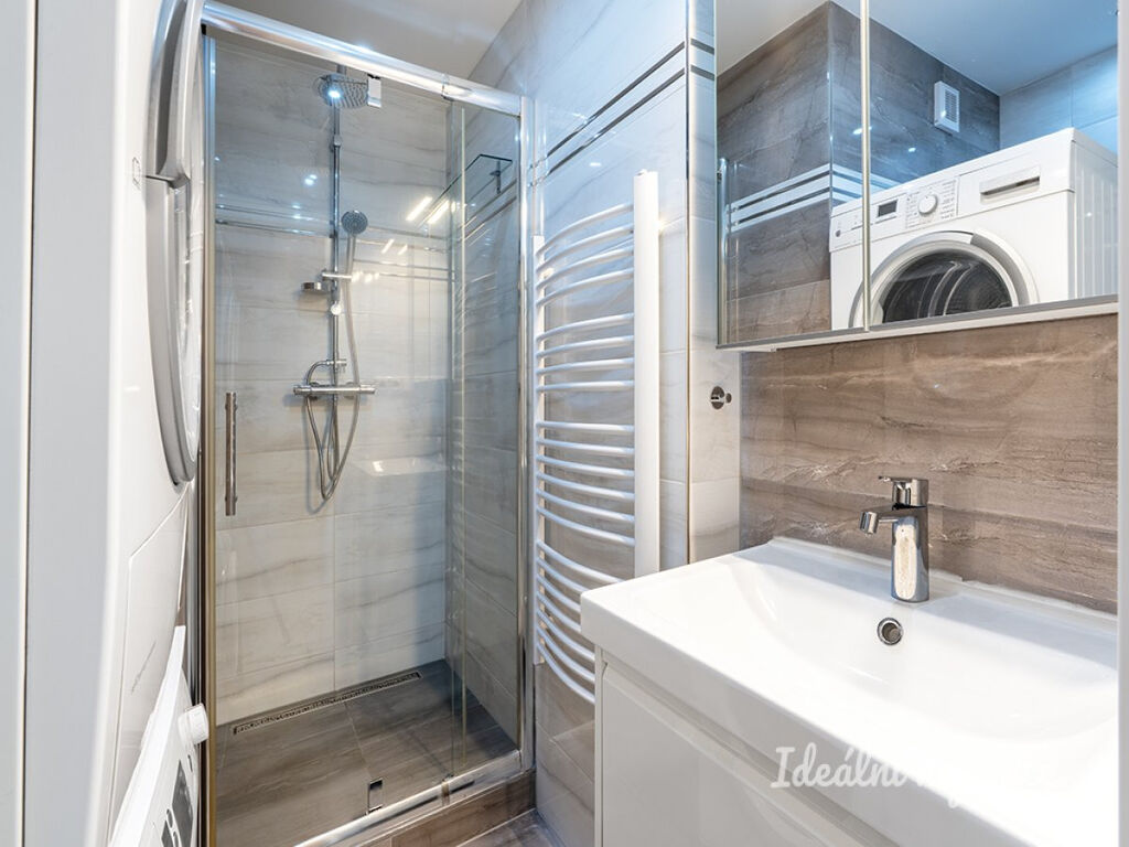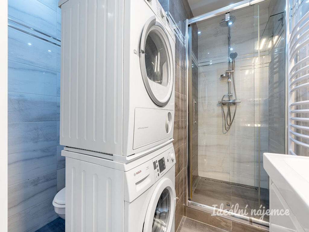 Byt se nabízí částečně vybavený. Kuchyně disponuje lednicí, elektrickou troubou, varnou deskou a digestoří. Obývací část i druhý samostatný pokoj je připravený k vlastnímu zařízení. Koupelna je vybavená sprchovým koutem, pračkou a také sušičkou.
