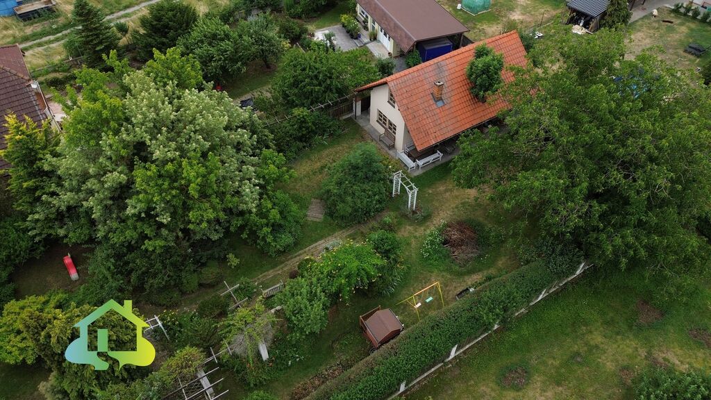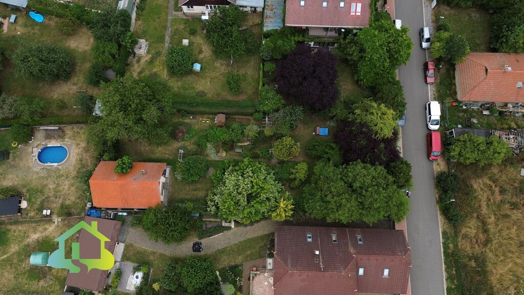 Na pozemku se vzrostlými stromy se nachází menší zděný zahradní dům o velikosti cca 50 m², který vznikl na místě stavby původního domu. Stavba je legální, ale nebyla dosud kolaudována a není proto zapsaná v KN. Objekt nabízí zázemí pro rekreační využití a nebo dočasného bydlení během výstavby jednoho či dvou RD.