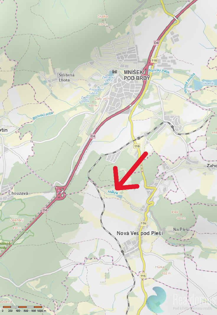Prodej rekreačního pozemku 680 m² – Nová Ves pod Pleší (20 min od Prahy)