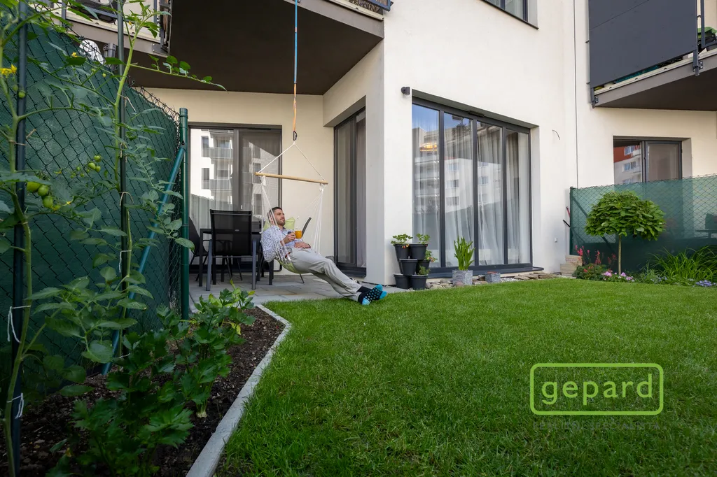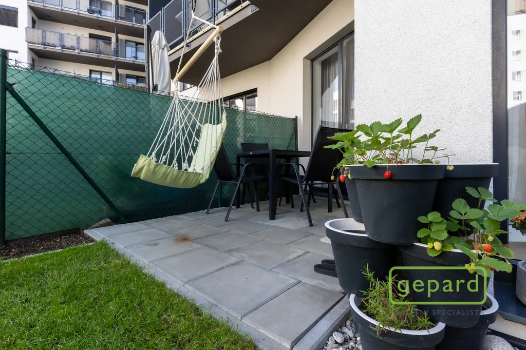 Skutečným bonusem tohoto bytu je vlastní zahrádka orientovaná do klidného vnitrobloku, přístupná z obývacího pokoje i ložnice, ideální pro relax, posezení s přáteli nebo pěstování bylinek a zeleniny.