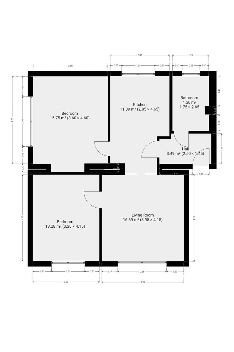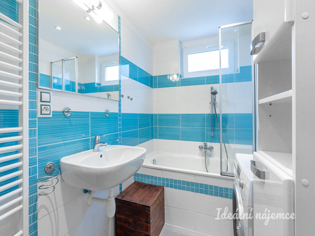 Nabízí se nevybavený. Kuchyně disponuje vestavěnou lednicí, myčkou nádobí, elektrickou troubou, indukční varnou deskou, digestoří a vestavěnou mikrovlnnou troubou. Kuchyni oddělují od obývacího pokoje šoupací dveře. V obývacím pokoji se nachází pouze sedačka, kterou je možné odstěhovat. Součástí ložnice je vstavaná komoda s policovým systémem. Druhá ložnice je nevybavená. V koupelně je vana, umyvadlo se skříňkou, toaleta, pračka a plynový kotel, který zabezpečuje vytápění a ohřev vody.