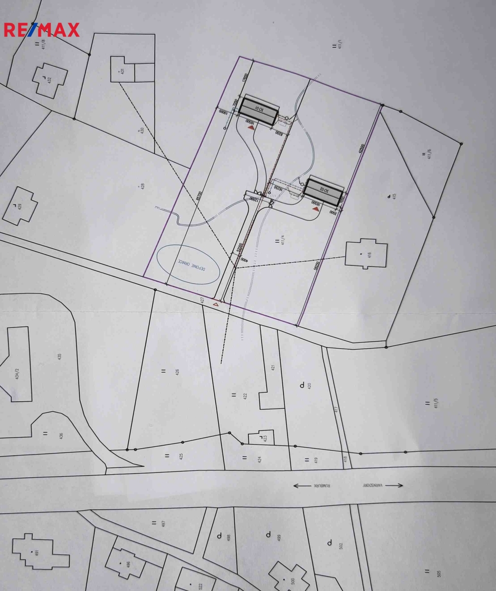 Na pozemku je možné dle vydaného územního rozhodnutí postavit dva nepodsklepené samostatně stojící dvoupodlažní rodinné domy o rozměrech cca 16,5 x 7 m (zastavěná plocha 116 m2) včetně garáže.