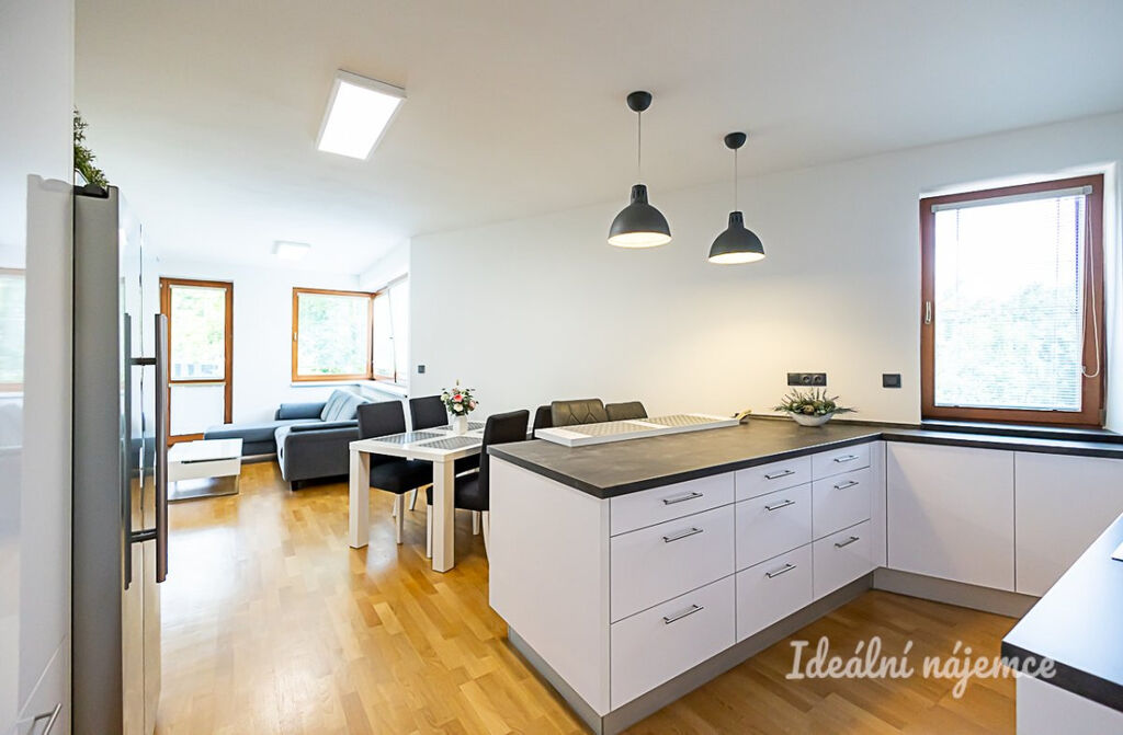 Exkluzivně k dlouhodobému pronájmu nabízíme moderní částečně zařízený byt 3+kk o rozloze 69 m2 s prostornou terasou ve 2. patře bytového domu v klidné rezidenční lokalitě pražské Krče s výbornou dopravní dostupností. K bytu náleží sklep a samostatná dvojgaráž.