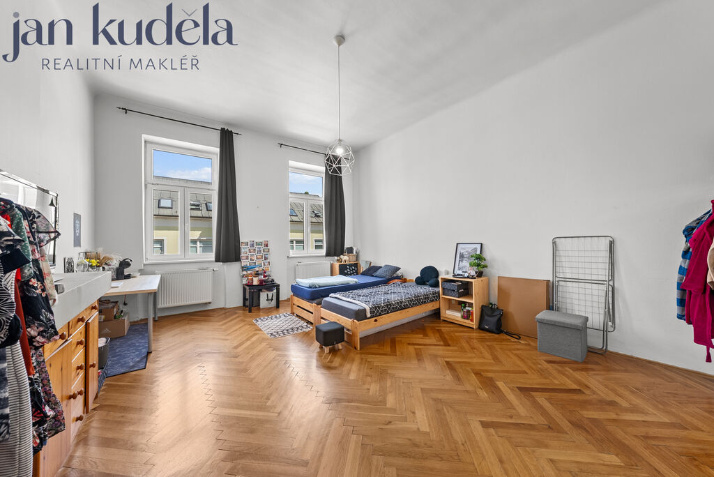 Nabízíme k prodeji byt o dispozici 3+1, který se nachází ve 4. nadzemním podlaží krásného cihlového domu v ulici Hybešova, přímo v srdci Starého Brna. Dům s historií, postavený v roce 1920, nemá výtah, ale má své kouzlo a atmosféru, která je dnes již vzácná.