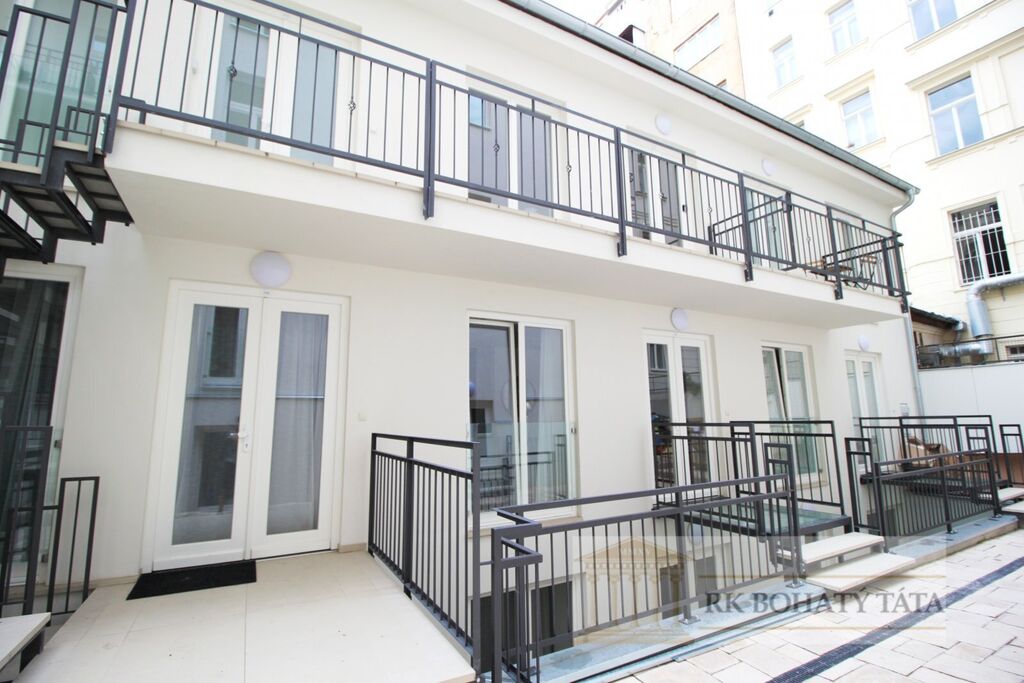 Nový moderní a čistý apartmán se nachází v 1. podlaží novostavby z roku 2019 v bezpečném a tichém dvoře zrekonstruovaného činžovního domu. Byt je zcela vybaven a zařízen a má svůj vlastní vchod ze dvora.