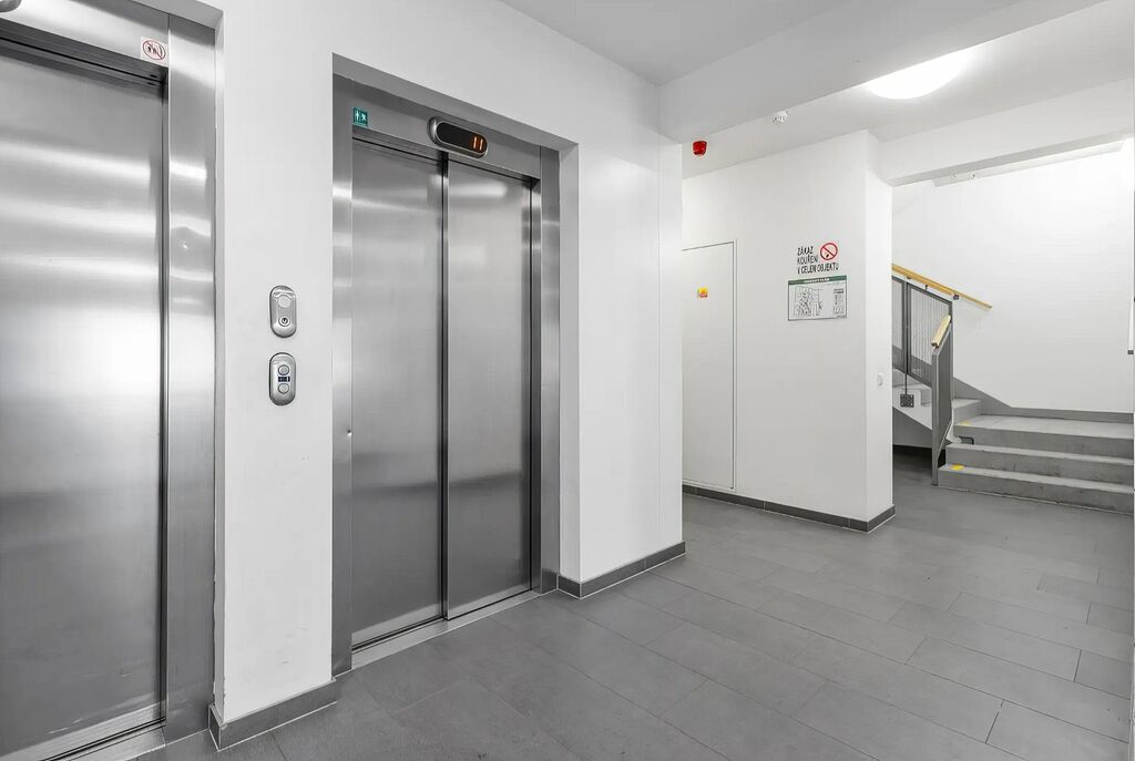 K bytu náleží také parkovací místo v podzemní garáži domu za 1 500 Kč, které není zahrnuto v ceně nájmu.