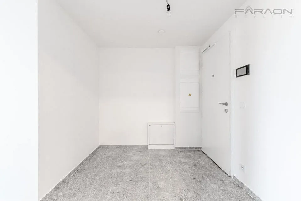 Interiér slunného bytu tvoří předsíň, prostorný obývací pokoj s kuchyňským koutem, ložnice, koupelna a balkon. Orientace bytu je na sever.