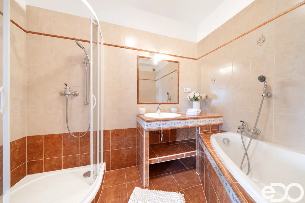 Hlavní výhodou bytu je jeho prostorná dispozice, krásná koupelna a velká terasa s výhledem do zeleně. Na terase se vstupem z obývacího pokoje si můžete užívat klidné chvíle s rodinou na čerstvém vzduchu nebo si vychutnávat v klidu ranní kávu.