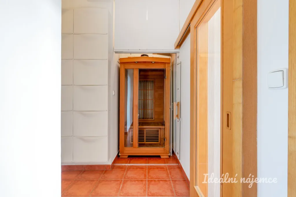 Velkým benefitem tohoto moderního bytu je infrasauna pro 2 osoby.