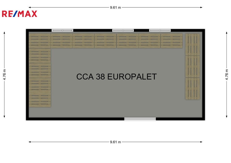 ✅• ROZMĚRY: 960cm x 475cm, výška stropu v kóji 268cm.