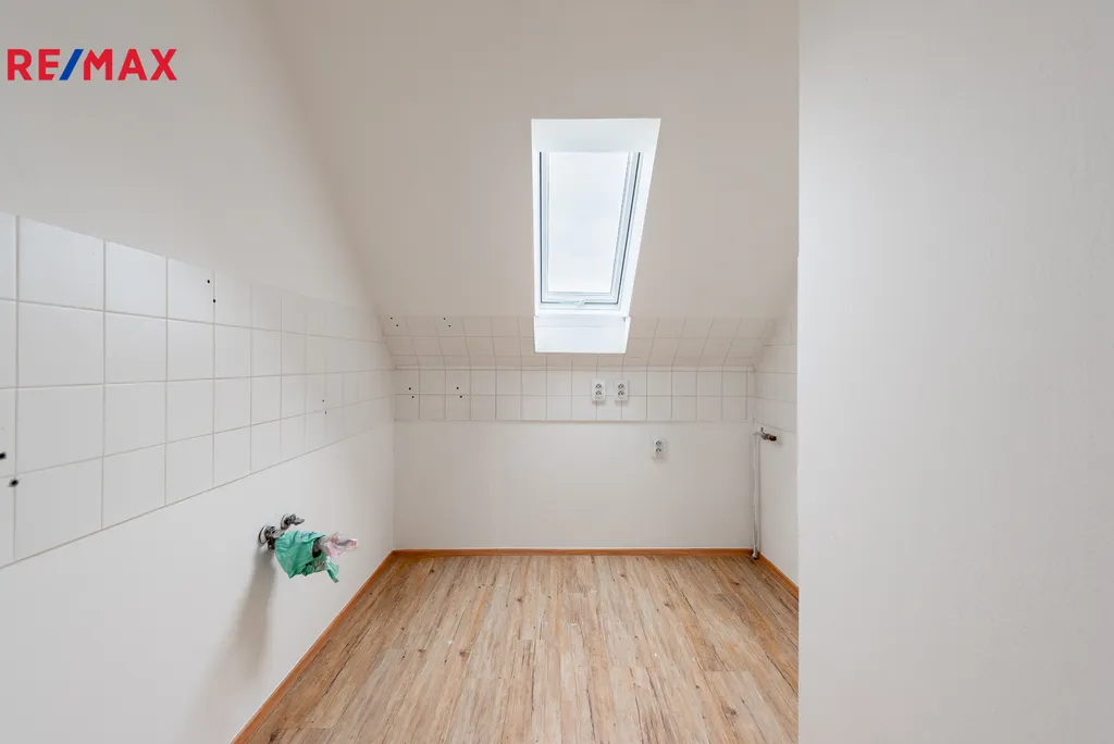V 1. patře se nachází obytný prostor o dispozici 2+1 a rozloze 66 m², z čehož 56,6 m² tvoří obytná plocha a zbylých 9,4 m² technické zázemí. K dispozici je malá kuchyň vybavena kuchyňskou linkou s kompletním vybavením kvalitními spotřebiči, koupelna s toaletou, sprchovým koutem a oknem.
