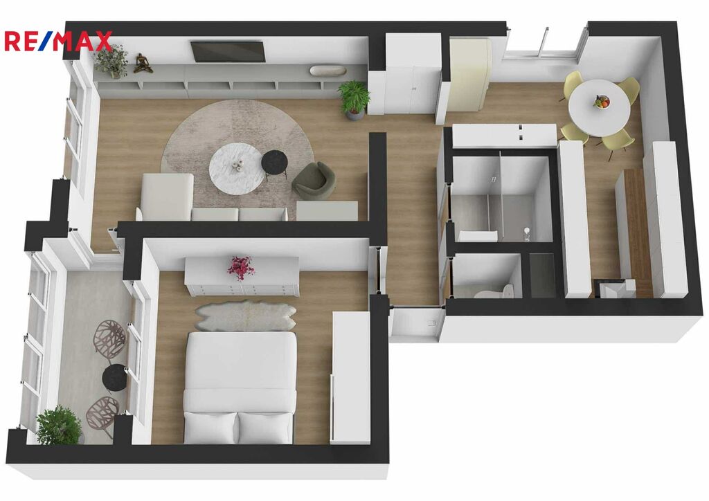 Byt o obytné ploše 48 m2 se nachází v 1.patře/3 , skládá se z prostorného obývacího pokoje (16,5 m2), ložnice (11,6 m2), kuchyně (12,5 m2), předsíně (3,6 m2), koupelny (2.4 m2) a samostatného WC (1 m2). K bytu náleží zasklená lodžie o velikosti (4 m2), a dva sklepy (10m2) dále možnost užívání společných prostor (kočárkárna).