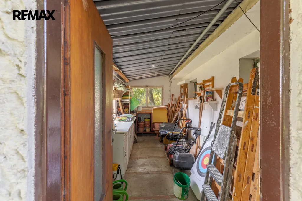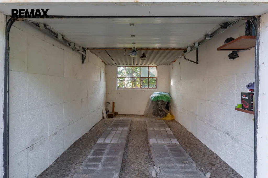 Dům je plně podsklepený, takže kromě technického zázemí (elektrokotel spolu s kotlem na tuhá paliva, bojler) zde najdete i dřevník, kolárnu, prádelnu s pračkou a několik dalších místností. Jedna z nich byla původně plánována jako garáž, dnes slouží jako velký úložný prostor pro zahradní nábytek či vybavení. Praktickým doplňkem je také přístavba, která slouží jako zahradní domek. Garáž s elektrickými vraty je přistavěna přímo k domu, vjezdová brána je rovněž na dálkové ovládání.