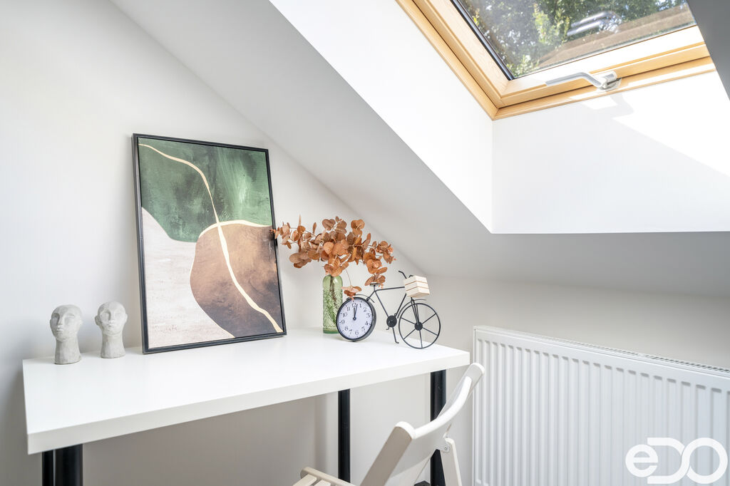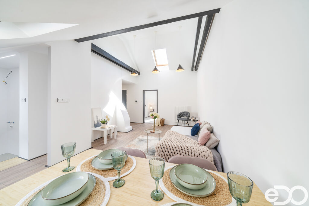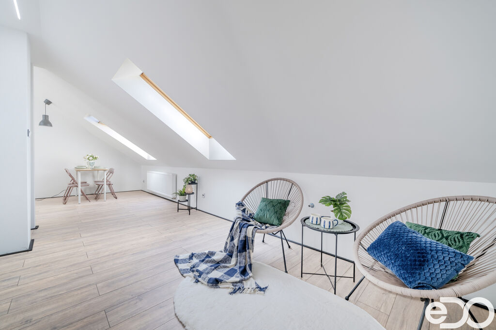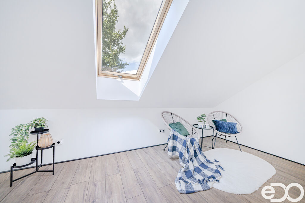Na bytě je nová kachličková koupelna, nová elektřina i se zásuvkami, vypínači a světly. Jsou zde nová střešní okna značky Velux.