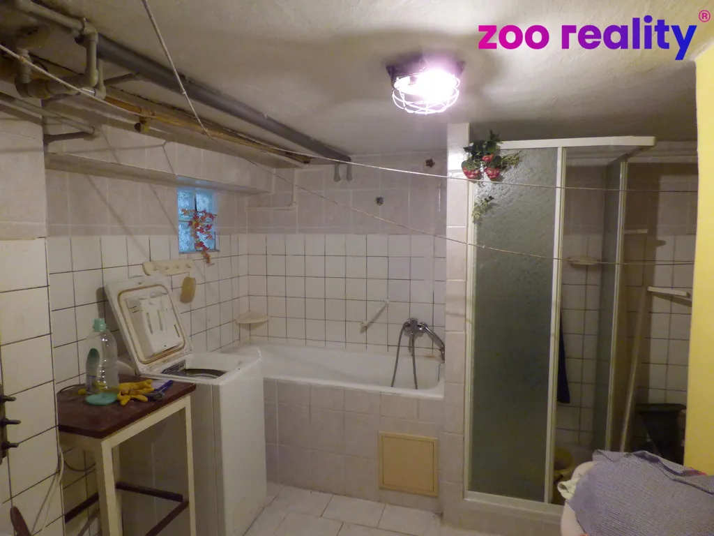 Velkou výhodou domu je prostorný sklep, který nabízí sklípek pro uskladnění ovoce a zeleniny, dílnu, prádelnu s vanou a sprchovým koutem, další pokoj, kuchyňku a přímý vstup na zahradu.