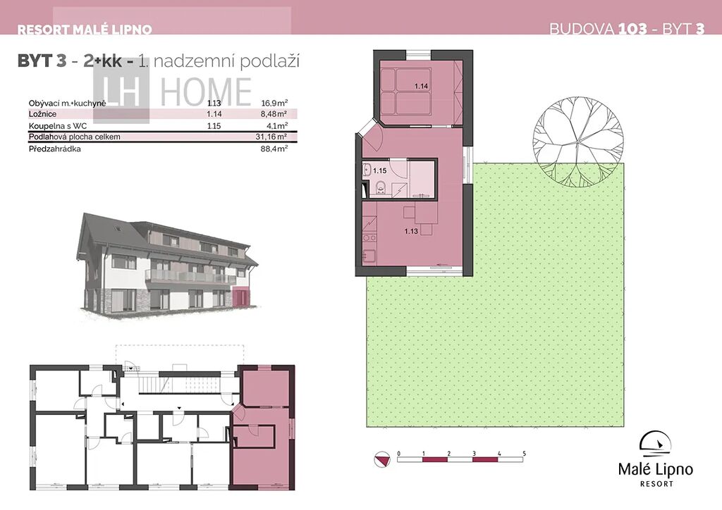 Hledáte bydlení v srdci Šumavy, kde můžete relaxovat, sportovat a užívat si přírodu? Tento byt 2+kk o velikosti 31,16 m² v 1. nadzemním podlaží moderní novostavby v Resortu Malé Lipno splní Vaše sny!