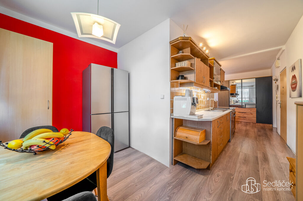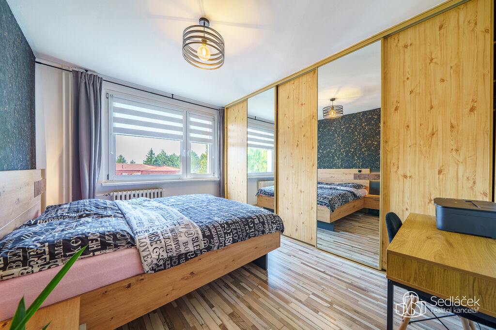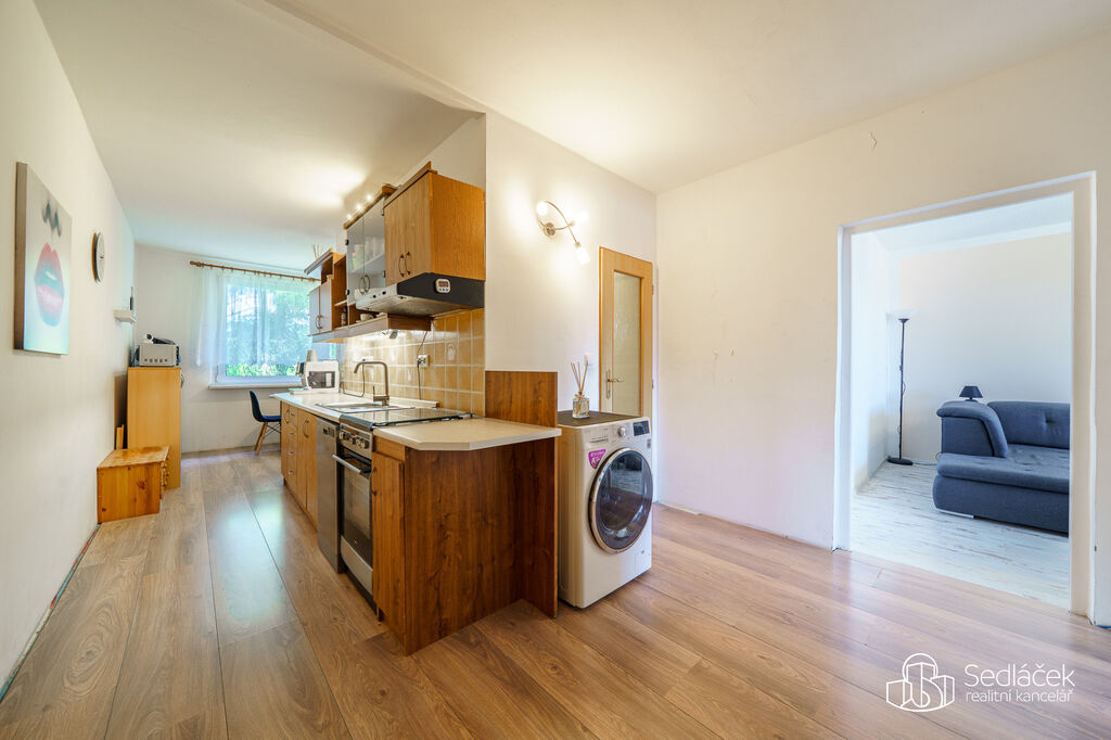 Dispozice bytu je velmi praktická – všechny pokoje jsou neprůchozí a zajišťují tak dostatek soukromí. Předsíň je nadstandardně prostorná a nabízí variabilní možnosti využití. Kuchyně má místo na jídelní stůl. Zděné jádro přináší dlouhou životnost a koupelna osazená vanou dodává pohodlí pro rodinný život. Podlahy kombinují laminát a dlažbu, což podtrhuje moderní a útulný charakter interiéru.