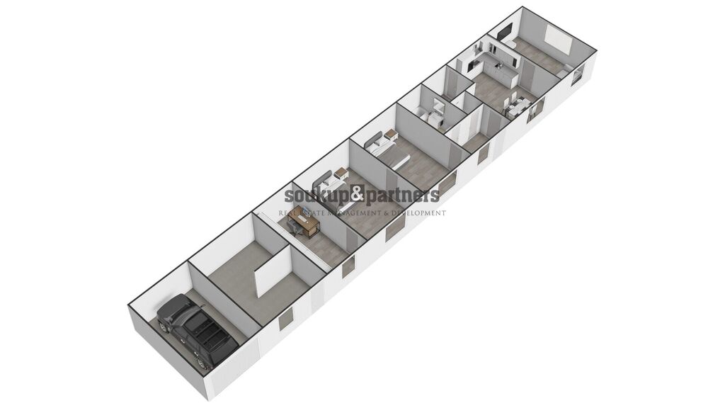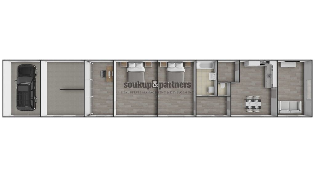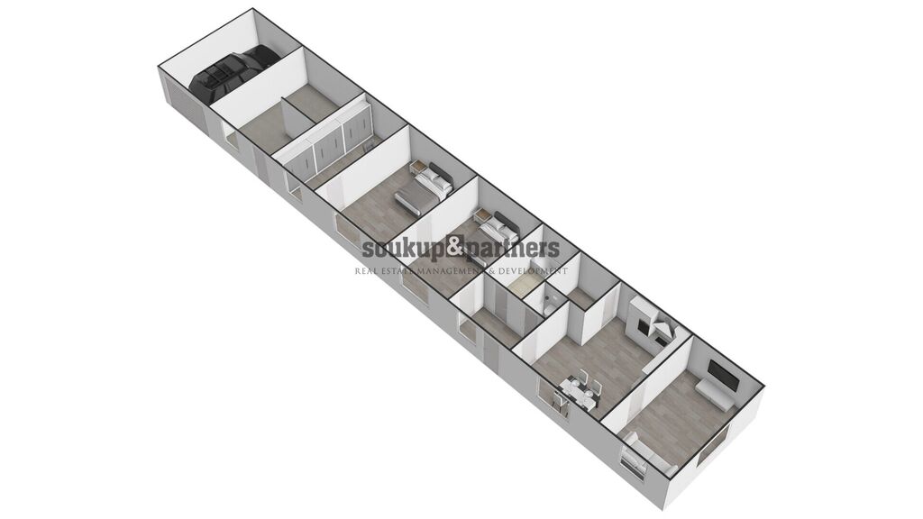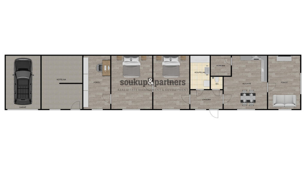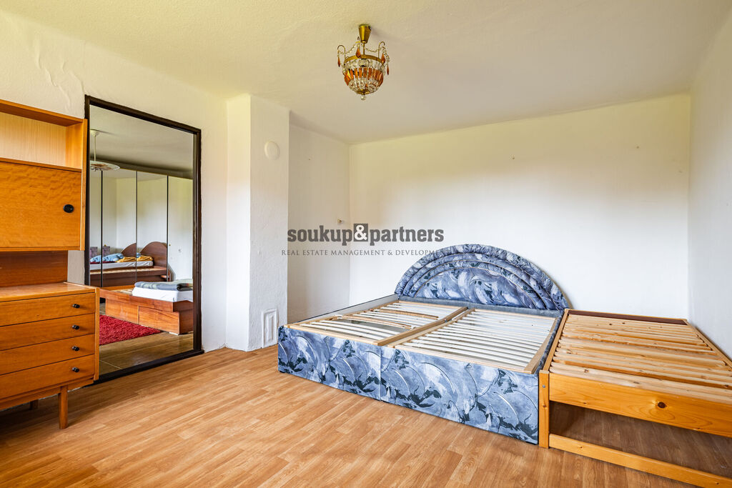 • 1 010 m² – zahrada vedená jako stavební parcela, s vlastní přístupovou cestou a kompletními inženýrskými sítěmi na hranici pozemku.