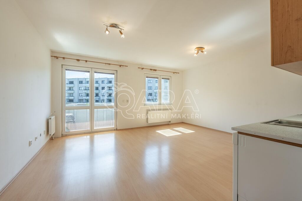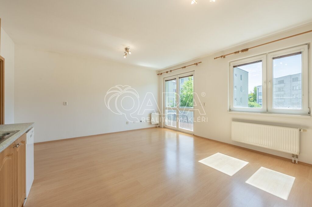 Nabídka pronájmu nezařízeného bytu o dispozici 2+kk s lodžií, ul. Františka Diviše, Praha 10 – Uhříněves. Byt je umístěn ve 2. nadzemním podlaží bytového domu z roku 2008.