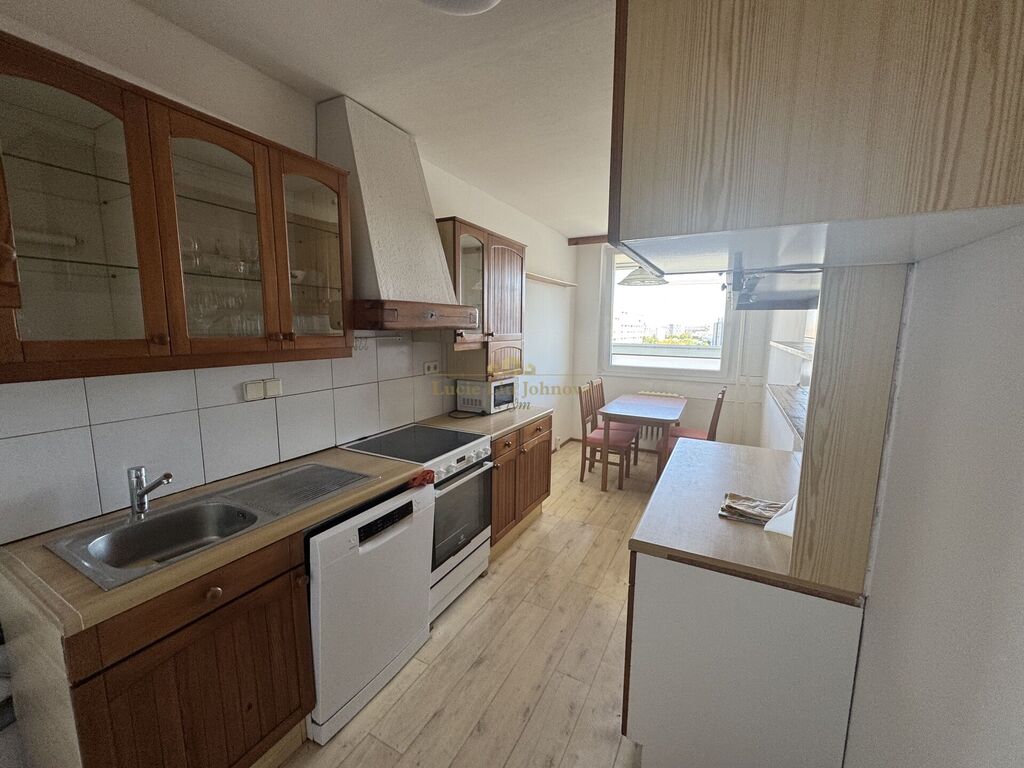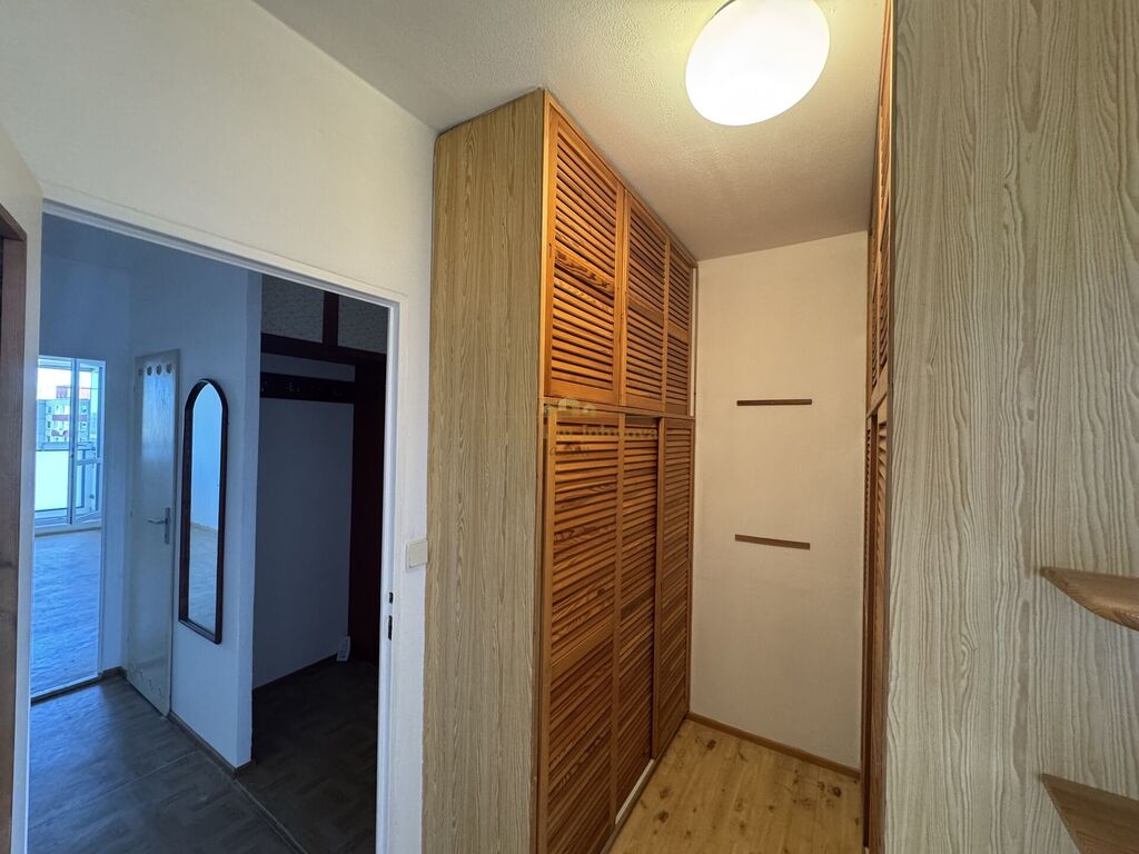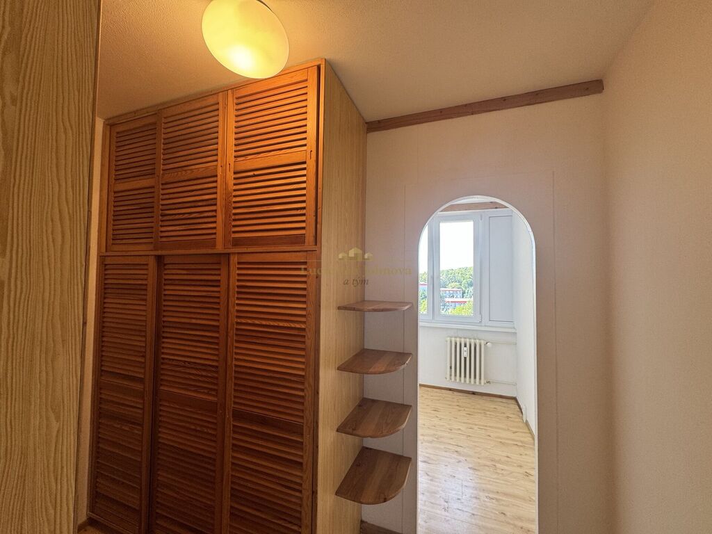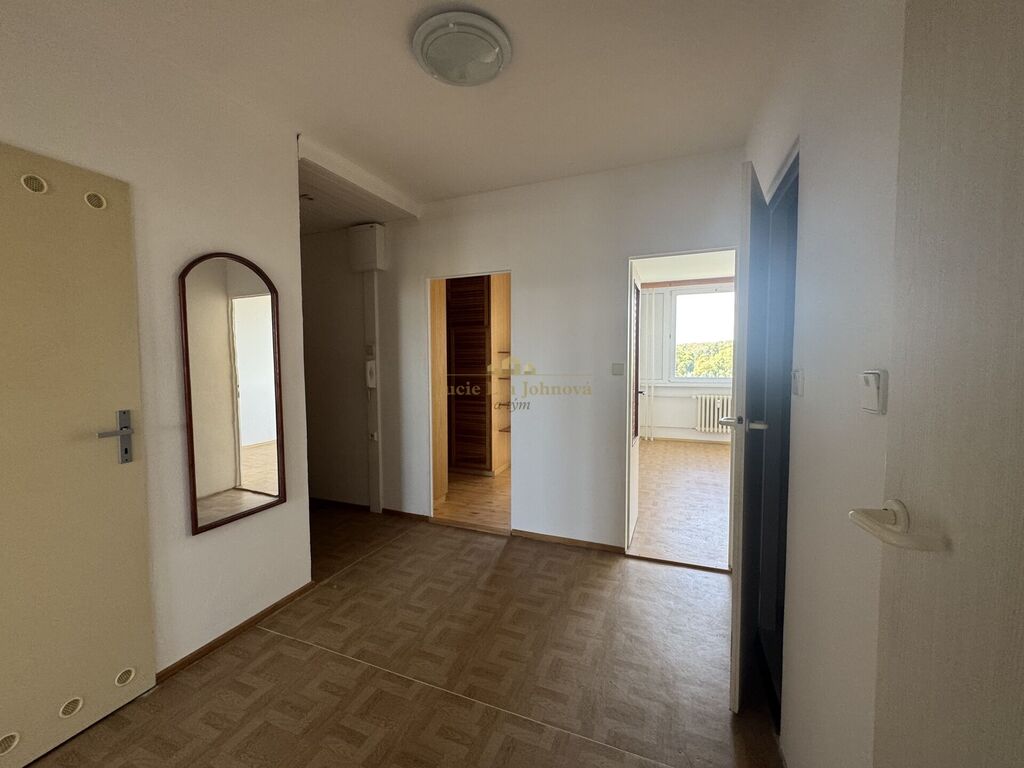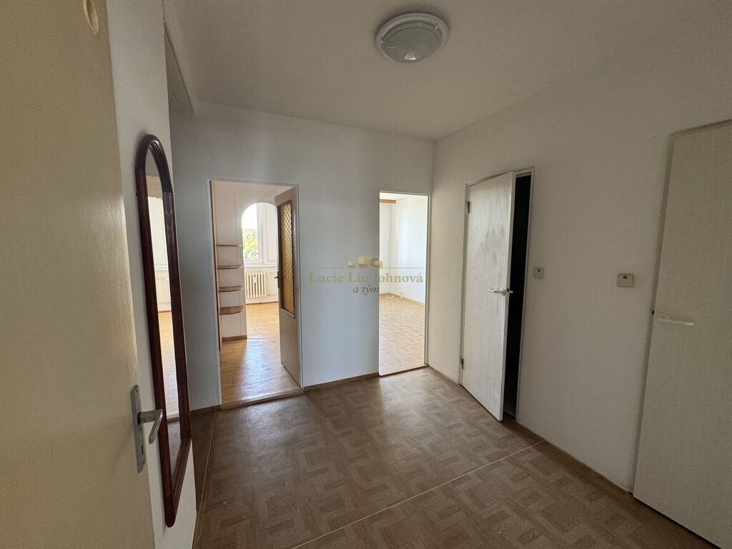 Dispozičně je byt řešen velmi prakticky – centrální vstupní chodba propojuje všechny místnosti. K dispozici je koupelna s vanou, umyvadlem a pračkou, samostatné WC a úložná komora. Na západní stranu jsou situovány dva pokoje, z nichž jeden je vybaven vestavěnými skříněmi a může sloužit například jako pracovna. Na východní stranu je orientována kuchyně s jídelním koutem a obývací pokoj, ze kterého je vstup na lodžii. Díky orientaci na obě světové strany je byt příjemně světlý a prosluněný během celého dne. Parkování u domu je bezproblémové – v okolí je dostatek volných míst i během večerních hodin.