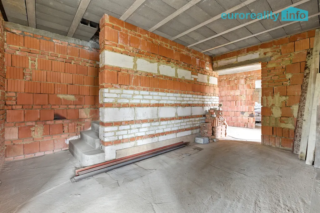 - Hrubá stavba domu – tři podlaží, tzn. suterén s třemi sklepy, přízemí s garáží 32 m2 a podkroví, celkem 302 m2, nabízí se kombinace bydlení s podnikáním. Dům je zděný z bloků Porothermu, garáž tvárnice Hebel. Střešní krytina Bramac. U domu je plánována velká terasa s bazénem.