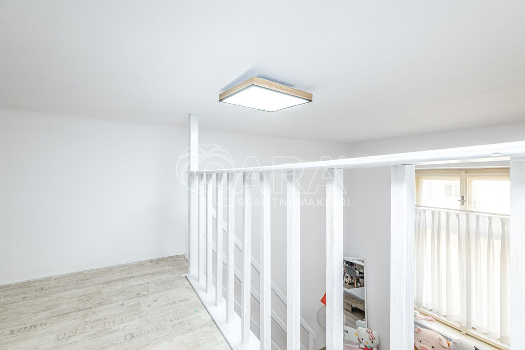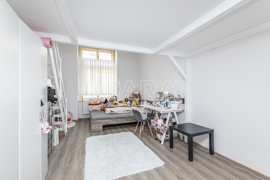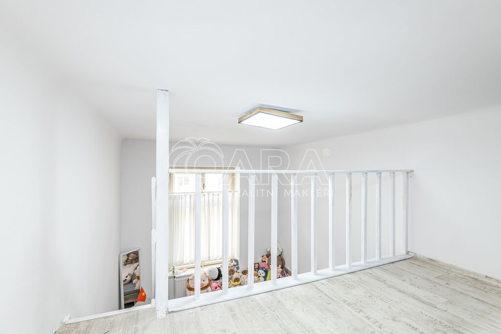 Byt se nachází ve 2. patře pavlačového domu, který má své kouzlo a atmosféru. Dispozici tvoří kuchyně s elektrickým sporákem, koupelna se sprchovým koutem a WC, obytný pokoj s vestavěným patrem a komora. K bytu náleží také sklep. V domě probíhá výstavba nového výtahu.