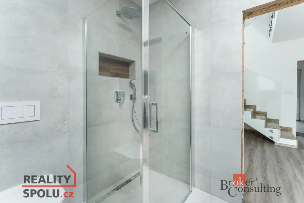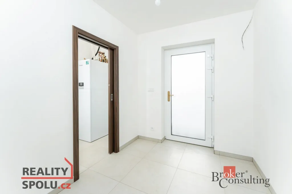 Nabízíme k prodeji moderní řadový rodinný dům o dispozici 4+kk, s obytnou plochou 120 m² a pozemkem o velikosti 387 m². Dům se nachází v závěrečné fázi výstavby – v interiéru právě probíhá instalace vnitřních dveří, exteriér čekají poslední terénní úpravy. Kolaudace je plánována na první polovinu příštího roku.