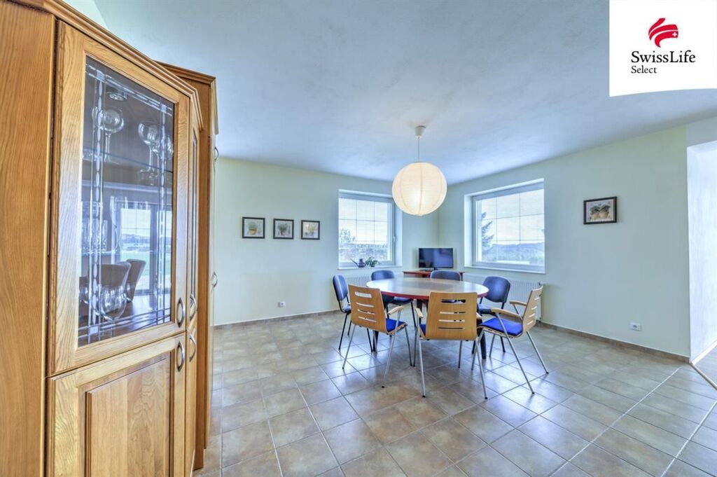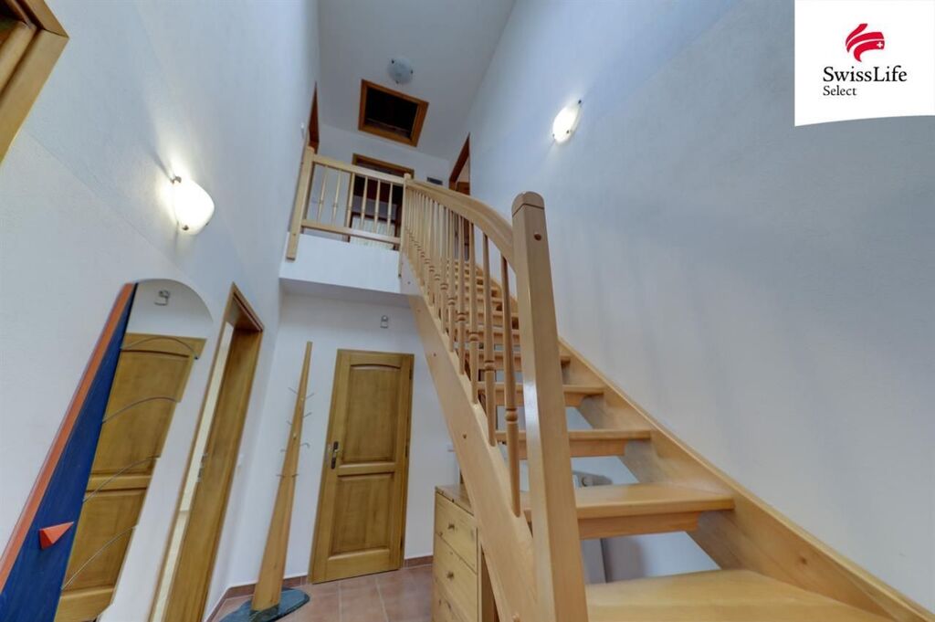 V přízemí domu je vstupní část, kuchyň se zánovní kuchyňskou linkou s vestavnými spotřebiči, obývací pokoj s krbem, jídelna a další pokoj, koupelna se sprchovým koutem a toaletou, technická místnost. V přízemí je podlahové teplovodní vytápění v koupelně a v kuchyni. Do horního patra domu vystoupáme po krásných dřevěných schodech. V patře jsou další tři pokoje s balkónky, každý pokoj má koupelnu se sprchovým koutem a toaletou. Pokoje mají masivní dřevěné podlahy.