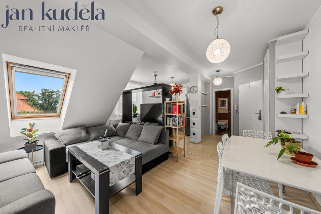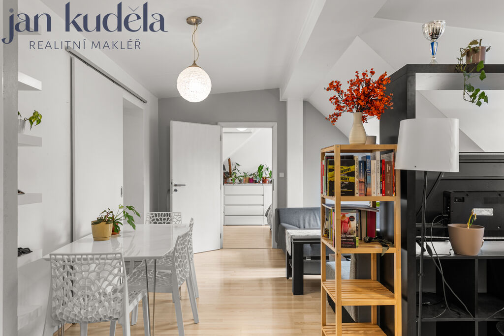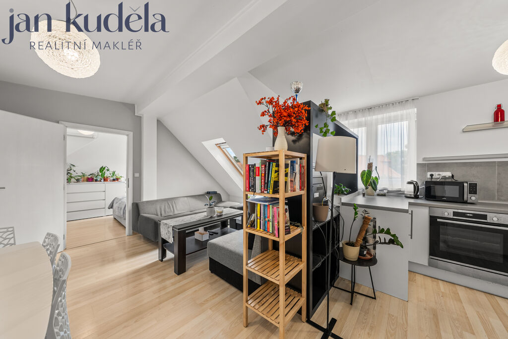 Nabízíme jedinečnou příležitost ke koupi krásného podkrovního bytu 3+kk na ulici Huskova v Brně-Černovicích. Byt má užitnou plochu 57 m², sklep a navíc prostornou terasu o velikosti 12,1 m² orientovanou do klidného vnitrobloku – ideální místo pro ranní kávu nebo večerní posezení s přáteli.