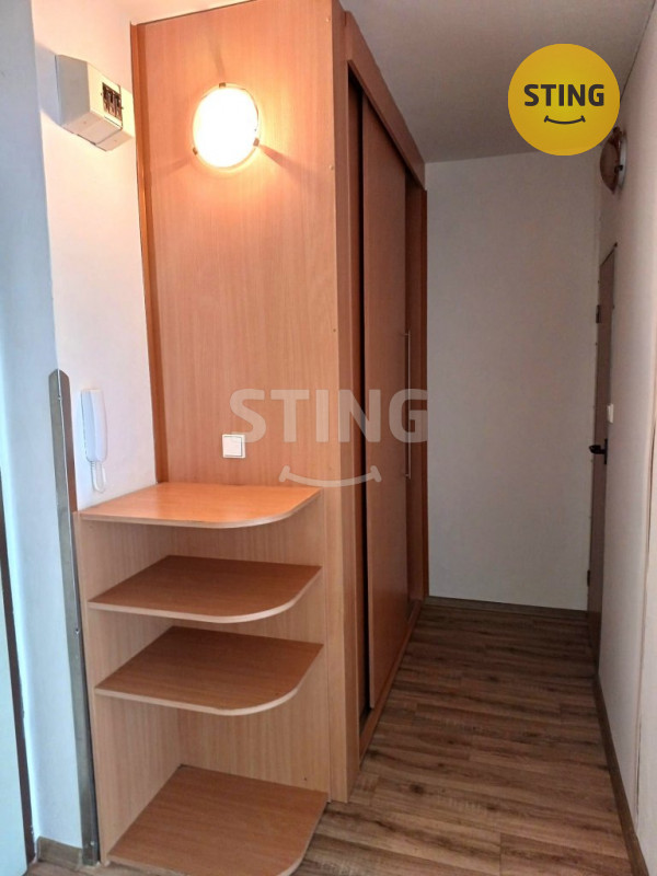 Byt je slunný a orientovaný mimo rušné komunikace. Dispozici tvoří pokoj o výměře 19 m², kuchyň s kuchyňskou linkou, pračkou a spíží a koupelna se sprchovým koutem, v předsíni velká šatní skříň. K bytu náleží sklep 1,8 m2.