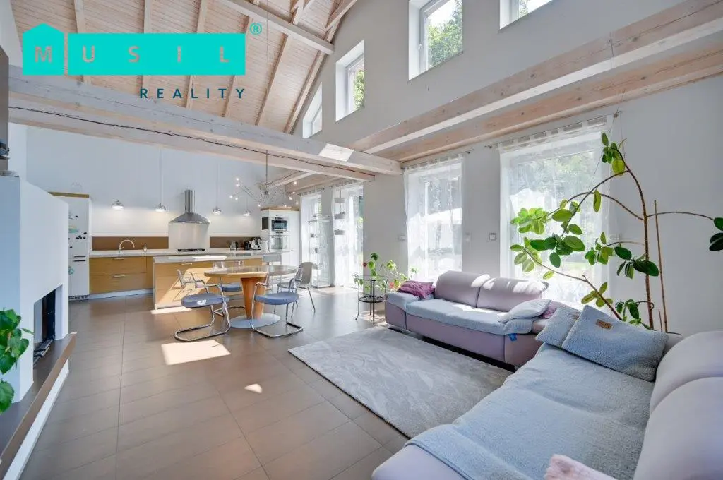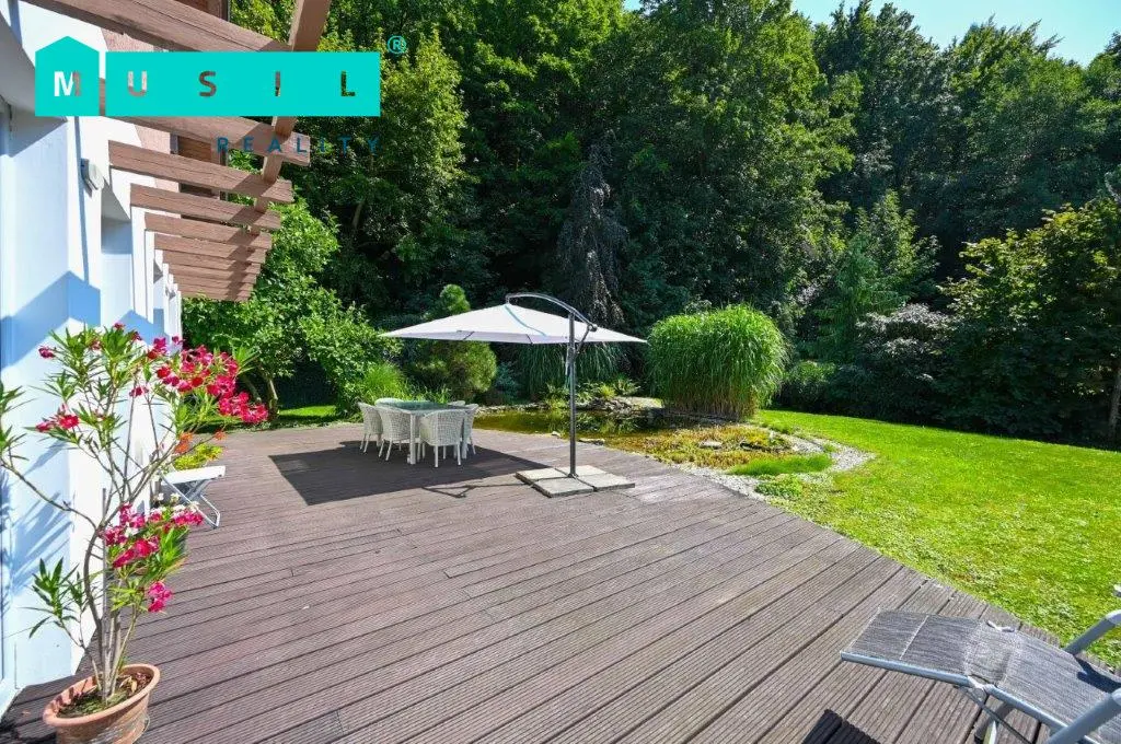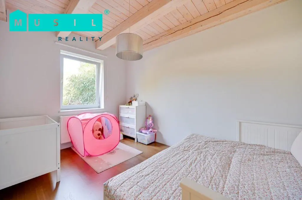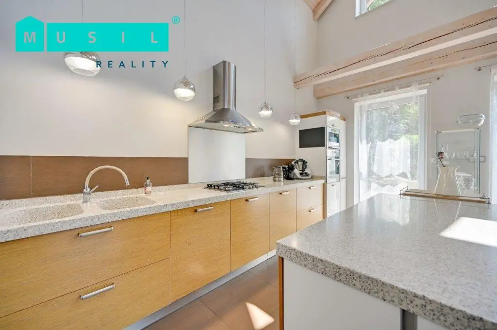 Chtěli byste bydlet v moderním domě, v klidné lokalitě u lesa, ale zároveň ve městě? Pak je tato nabídka určena právě vám. Nabízíme k prodeji luxusní rodinný dům s velkou a udržovanou zahradou ve Šternberku. Dům se nachází na konci slepé ulice Za Humny ve Šternberku, a to ve velmi klidné lokalitě na hraně lesa, do kterého je možno vstoupit přímo ze zahrady. Na udržované zahradě se nachází zahradní domek s krytým parkovacím stáním, jezírko s rybami a bazén se zastřešením a se slanou vodou. Dům je zděná novostavba s izolační fasádou, kolaudovaná před 16 lety. Celková výměra pozemku činí 1.865 m2. Dům je dispozičně řešen jako jednoposchoďový s dispozicí 5+kk o celkové obytné ploše cca 177 m2. V přízemí se nachází vstupní chodba se zabudovanými skříněmi, první koupelna se sprchovým koutem a vanou, samostatné WC, dvě ložnice, technická místnost s pračkou a sušičkou a komora. Hlavní část přízemí domu zabírá velkoryse řešený obývací pokoj (cca 50 m2) s otevřeným stropem a krbem. Z krásně prosvětleného obývacího pokoje je přímý vstup na terasu, u které se nachází zahradní jezírko s rybami. Dále je zde kuchyňský kout s kvalitní kuchyňskou linkou s kameninovou pracovní deskou a značkovými spotřebiči. Do patra se vstupuje po dřevěném schodišti. Vystoupáte do galerie, z které je výhled do obývacího pokoje pod vámi. V patře se nacházejí dva pokoje a druhá koupelna se sprchovým koutem a WC. Kolem celého domu se rozprostírá udržovaná zahrada. Bazén není v současnosti funkční, je potřeba vyměnit poškozenou fólii. Nemovitost je ve velmi dobrém, obyvatelném stavu. Celkové pojetí domu je nadčasové a splňuje současné nároky na moderní a luxusní bydlení. Ideální nemovitost pro náročnějšího zájemce. Zejména umístění domu a lokalita je exkluzivní. Doporučujeme prohlídku.