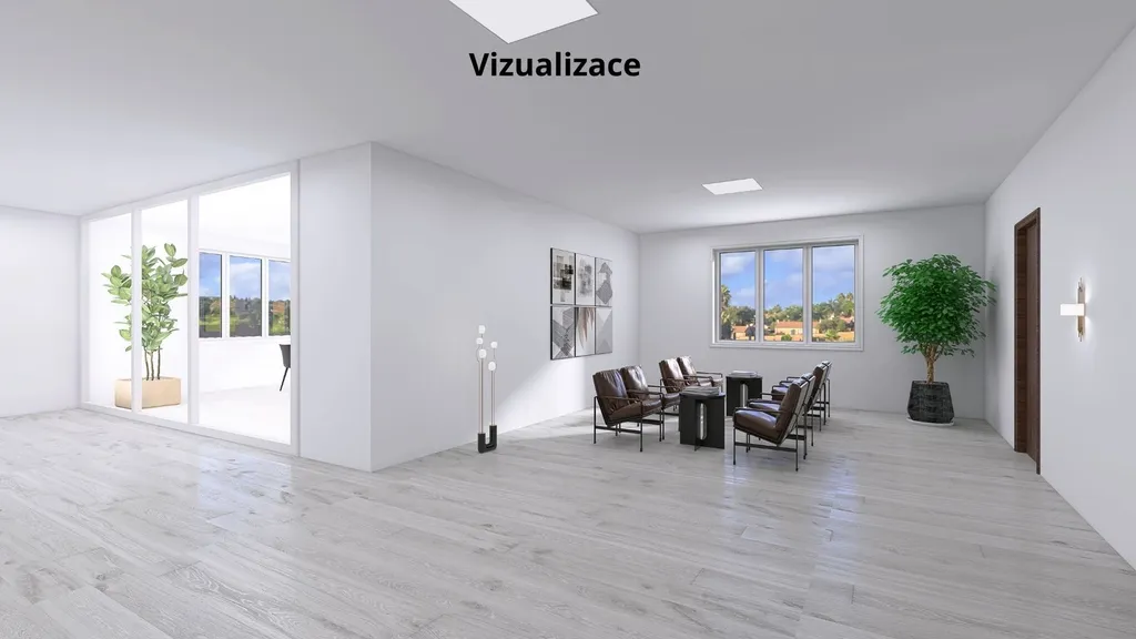 Součástí inzerce jsou nejen fotky aktuálního stavu, ale také vizualizace pro lepší představu o budoucím využití prostoru.