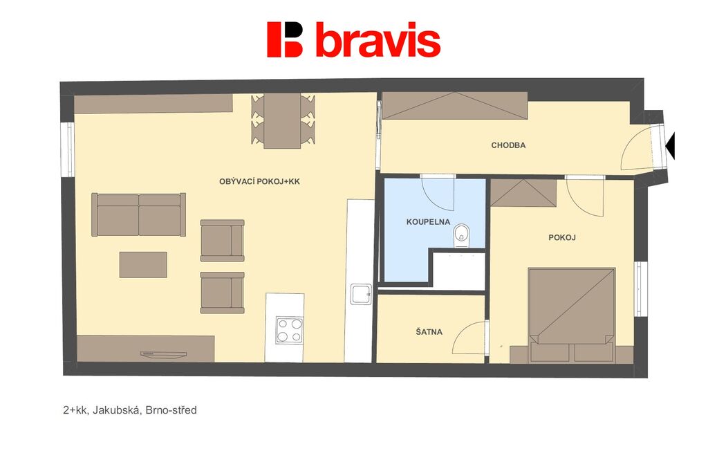 Nabízíme vám jedinečnou příležitost pronájmu luxusního bytu o dispozici 2+kk o užitné ploše 69 m², situovaného přímo v historickém srdci Brna na prestižní adrese – ulice Jakubská, v těsné blízkosti ulice Česká.