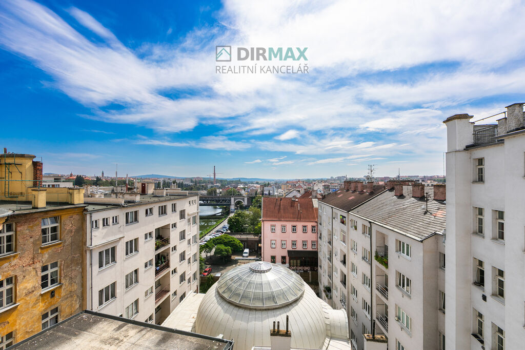 Srdcem bytu je denní místnost s prostornou kuchyňskou linkou, vyrobenou na míru, na kterou plynule navazuje jídelní stůl. Kuchyně je vybavena indukční varnou deskou, odsavačem par, troubou, myčkou na nádobí, mikrovlnou troubou a samostatně stojící americkou lednicí. Milovníka starých bytů jistě zaujme průzor z chodby bytu do ložnice a dále na přilehlý balkon. Z balkónu se nabízí jedinečný výhled – na Západočeské muzeum v Plzni, Šafaříkovy sady a řeku Radbuzu s náplavkou.