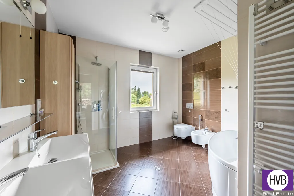 Nabízíme na prodej novostavbu - (vícegenerační) dům 6+kk 333 m2, pozemek 600 m2, lokalita Podolanka (Jenštejn), Praha - východ. Dům byl stavěn pro vlastní využití, majitelé si dali záležet s výběrem materiálů, stavebních postupů a celkového návrhu domu, aby vznikl praktický a energeticky úsporný dům - nízké měsíční náklady. V přízemí se nachází vstupní síň s úložným prostorem, obývací pokoj s krbem a kuchyňským koutem, jedna koupelna s WC, tři neprůchozí pokoje (ložnice/pracovna) a další koupelna s WC, vanou a sprchovým koutem. Součástí přízemí je také zimní zahrada s venkovním krbem. V prvním patře se nachází koupelna s WC a sprchovým koutem a dva neprůchozí pokoje - jeden menší a jeden větší. Větší pokoj má vlastní terasu a je momentálně připraven k úpravě – lze jej rozdělit na menší pokoje, nebo ponechat jako prostornou místnost. V prvním podzemním podlaží, s přímým vjezdem z ulice, se nachází garáž na dvě auta, technická místnost, WC a dílna. Dopravní dostupnost: 5km do Brandýse nad Labem - Stará Boleslav, 17km do centra Prahy, 2km do Praha - Vinoř. V případě zájmu či dotazů neváhejte kontaktovat makléře i přes víkend.