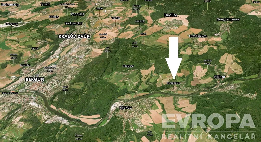 Nabízíme k prodeji krásný rodinný dům s dispozicí 5+kk ve Stradonicích u Nižboru v CHKO Křivoklátsko. Součástí prodeje je patrový zrekonstruovaný dům o ploše 260 m2, slunná zahrada o rozloze 426 m2 s bazénem, skleníkem a zahradním domkem. Velikou výhodou tohoto domu je, že hlavní obytná část s obývacím pokojem, kuchyní, šatnou, koupelnou, toaletou a třemi pokoji se nachází v jednom podlaží. Součástí domu je rozlehlé obytné podkroví, kde je dovedena voda i odpad a naskýtá se zde možnost pro další samostatnou jednotku nebo případně lze využít jako velkou ložnici. Detailní dispozice domu je součástí půdorysného plánku. Dům disponuje prostorným technickým zázemím (dílna, kotelna, sklep ...)